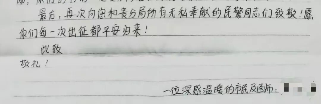 严医生在信中也写道:“一支如此优秀的基层队伍背后,必然离不开分局党委的有力领导与悉心培育。正是卓有成效的队伍建设和以人民为中心的工作理念,才造就了这样一支在群众危难时刻信得过、靠得住、能放心的公安铁军。”