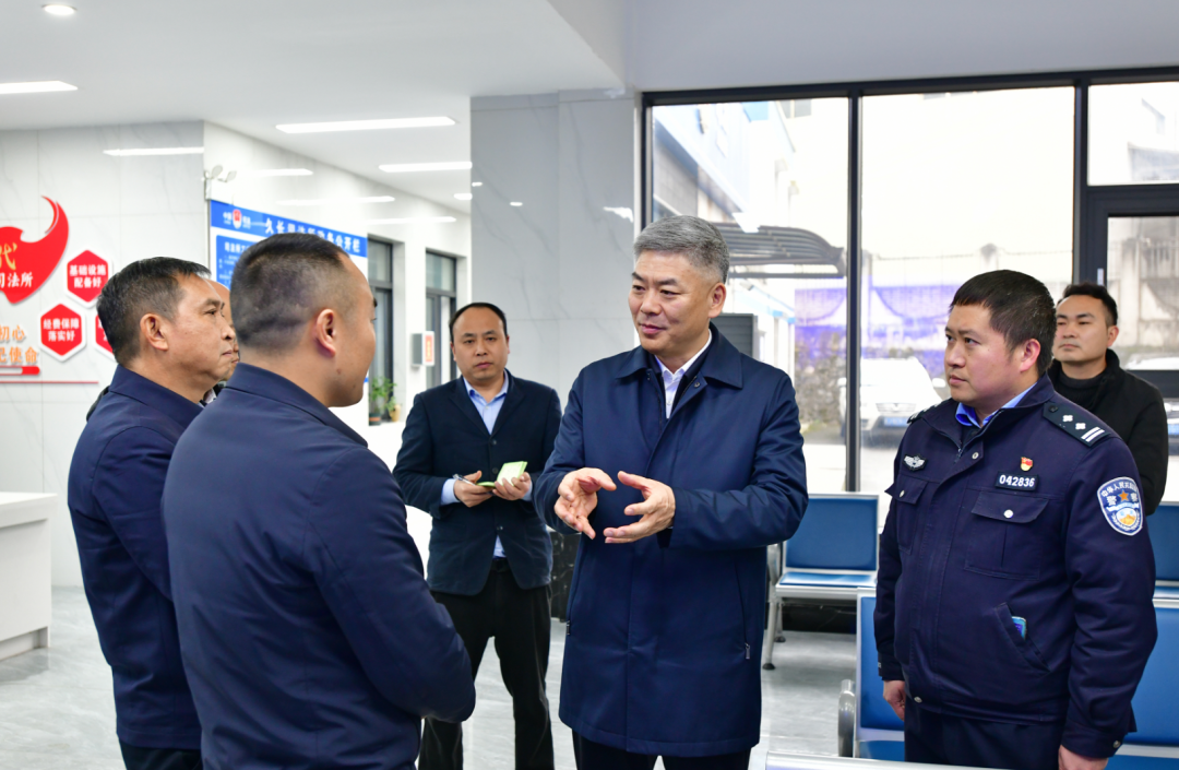 久长街道“两所一中心一法庭”政法综合楼是修文县第一家乡镇(街道)政法综合业务融合办公场地,许俊松来到这里,详细了解派出所、司法所、综治中心、法官工作室工作运行情况。他强调,要持续完善政法委员在乡镇(街道)党(工)委领导下统筹指导基层政法力量的制度机制,加强基层政法单位建设,全链条做好婚恋、邻里等矛盾纠纷排查化解,深化群体服务管理,扎实做好“九五”普法等工作,推动矛盾风险从被动处置到主动防控、治标到治本转变,努力实现“小事不出村、大事不出镇、难事不出县、矛盾不上交”。